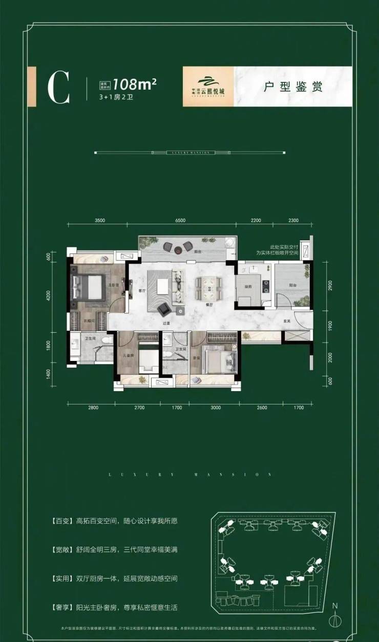 95㎡“2+1” 房在 79㎡基础上升级:增加独立卫浴与阳台空间,主卧带套间设计提升私密性,南向超 6 米阔景阳台串联客卧与客厅,可拓展为儿童活动区或休闲区;108-120㎡“3+1” 房则采用横厅布局,超 6 米阳台实现 270° 园林景观视野,采光面与通透性大幅提升,适配多代同堂或高端改善需求。所有户型均带智慧装修,配备智能窗帘、智能安防、智能灯光、智能交互中心,实现 “一键掌控全屋” 的便捷生活,贴合现代家庭对科技居住的需求。