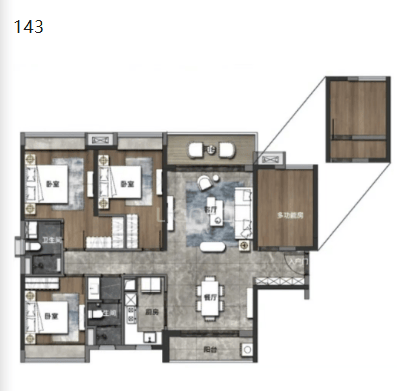保利华侨城云禧在户型设计上,充分考量了不同家庭结构的居住需求,推出了多款全龄适配的主力户型,涵盖了从刚需到改善的各个层次。项目全系户型方正实用,整体使用率高达77%-95%,户户朝南,部分户型可实现南北对流、望江揽园,最大化提升了居住的舒适度与实用性。在刚改主力户型方面,建面约97平方米的三房两厅两卫设计,采用了LDKB一体化大方厅设计理念,将客厅、餐厅、厨房、阳台融为一体,空间开阔大气,6-7米的南向观景阳台更是将采光与视野发挥到极致,非常适合二胎家庭的全周期居住需求。在改善主力户型方面,建面约122-143平方米的四房两厅两卫/三卫设计,实现了南北双阳台对流,四开间朝南,7.6米的南向双联观景阳台,主卧配备独立步入式衣帽间与卫浴,空间尺度宽敞,功能分区明确,完美适配一步到位的改善客群。而在楼王顶豪户型方面,建面约171平方米的四房两厅三卫设计,更是采用了两梯两户专梯专户的尊贵配置,私享独立电梯厅,全南向双套房设计,270度环幕观景阳台,酒店式主卧套房,空间尺度对标市面200平方米以上的大平层,专为广佛高净值改善客群量身打造。