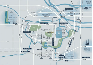 项目地址:佛山南海桂城三山新城长江路与科丰路交汇处,三龙湾科创核心区、千灯湖东拓临广板块