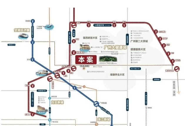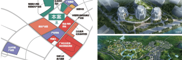 项目所在的钟落潭镇属于千亿级美丽健康城和广州第二大学城的核心地带。这里不仅汇聚了包括何济公、明兴制药、广药集团等在内的29家知名健康产业企业,还聚集了13所高等教育院校,如仲恺农业工程学院、广东白云学院等,为湾区培养了大量的科技人才。
