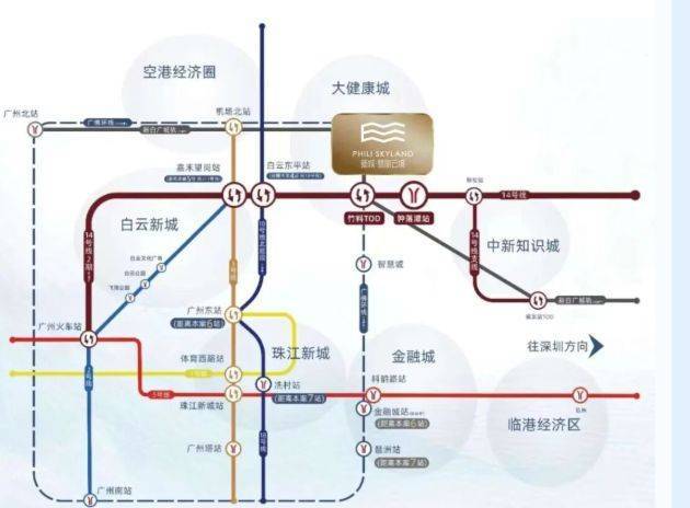 交通方面优势明显。距离地铁 14 号线钟落潭站大概 1000 米,5 站到嘉禾望岗,换乘 2、3 号线能直通白云新城,畅达广州全城。地铁站有指示牌,还有公交车一站直达项目,很方便。自驾的话,华南快速、京港澳高速等多条高速路环绕,畅行全城,纵横大湾区。18 号线北延段在建,未来到白云东平站与 14 号线交汇,换乘 7 站到冼村。还有广佛环线(预计 2025 年通车)和新白广城轨(在建中),3 站天河智慧城,1 站白云机场,交通网络发达。