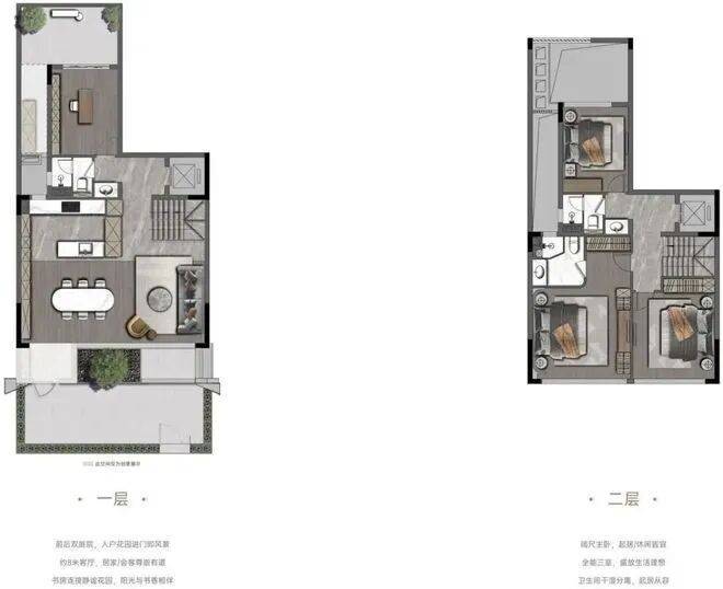 主力产品均为建面约143㎡户型,但小高层与叠院的空间逻辑完全不同。小高层是纯板式两梯两户设计,得房率接近80%,LDK一体化布局,主卧带独立衣帽区和双台盆卫浴;最让人眼前一亮的是那个IMAX级转角阳台——宽近7米、进深超2米,三面采光,种几盆薄荷、摆张躺椅,就是城市里难得的观景角落。而叠院分为上下叠,上叠从3层起,3层设客餐厨和次卧,方便长辈日常起居;4-5层为主卧和书房,屋顶还有私属露台。下叠则带首层庭院,孩子能在自家门前玩滑板,老人也能在院子里晒太阳。