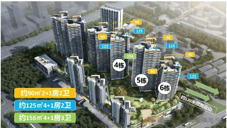 提供多种户型选择,包括90㎡的刚需户型,125㎡和160㎡的改善大户型。每种户型设计均考虑到了居住者的舒适性和实用性,比如90㎡户型设有270°瞰景阳台,125㎡户型则采用了双面宽瞰景阳台设计,160㎡户型更是南北通透,五开间朝南,满足不同家庭的需求。