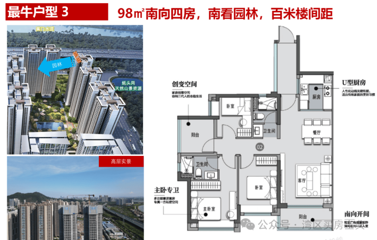 二期加推的5栋景观楼王,拥有百米楼间距,私密性强,南望园林,北望山景,高层望江。项目周边环绕着多个公园与水系,包括960万㎡4A级大山乸森林公园、2.5万㎡滨水市政公园、蕉门河滨江景观绿道以及7万㎡蚝头岗山景公园。这种“三公园两水景”的绝佳居住环境,让负氧离子含量达到800个/立方厘米,是珠江新城的50倍,堪称健康宜居的首选。