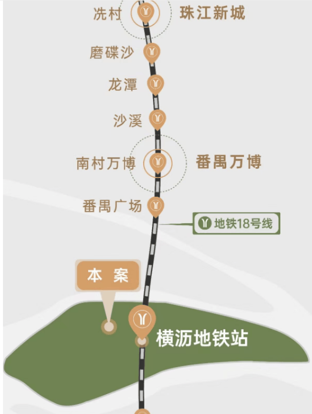 距离全国最快地铁18号线横沥站仅直线距离约650米,步行大约800米即可到达。通过18号线,可直达番禺广场及珠江新城等重要商业中心,连接白云、花都,并延伸至珠海等地,形成湾区内的高效交通网络。