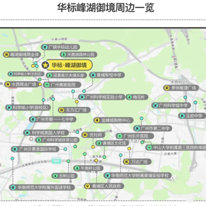 华标·峰湖御境的区位优势同样无可比拟,项目择址既在广州东进的主脉上,又处在科学城芯自然山水的巧妙结合处,堪称主城烫金地,拥揽全能配套,项目联络广州核心的“四大金刚”板块——天河智慧城、金融城、珠江新城、琶洲,直线距离均不超过15公里,交通便捷度极高,已开通的地铁6号线、21号线以及黄埔有轨电车1号线,加上多条交通干线,构建了立体化的交通网络,让业主随时切换繁华与繁花的生活,既可享受山居的清新与宁静,又可瞬息直达城市核心的商务中枢,在教育方面,项目配备广钢华标幼儿园,隔路对望便是科学城小学北校区,周边还有117中学、广州贝赛思国际学校、科学城美国人学校等多所优质学校,书香袅袅,天骄气质幼自成,为子女的成长提供了最优质的教育资源,商业方面,除了项目自身配备的建筑面积约2万平方米的商业综合体,周边的萝岗万达广场、高德汇购物中心、华润万家超市等成熟商业环绕,随心所欲,一站式尽享便利,于此,一眼万壑松风,凭虚凌世,转身满城人烟,灯火阑珊,足以成就“大隐于市”的独有宁静,这种“离尘不离城”的完美平衡,正是高净值人群最为向往的生活状态,正如经济学中的“区位理论”所揭示的,地段的价值在于其不可复制性与成长性,而华标·峰湖御境所处的地段,正是兼具了这两大核心要素的黄金宝地,其价值必将随着科学城的进一步发展而持续攀升。