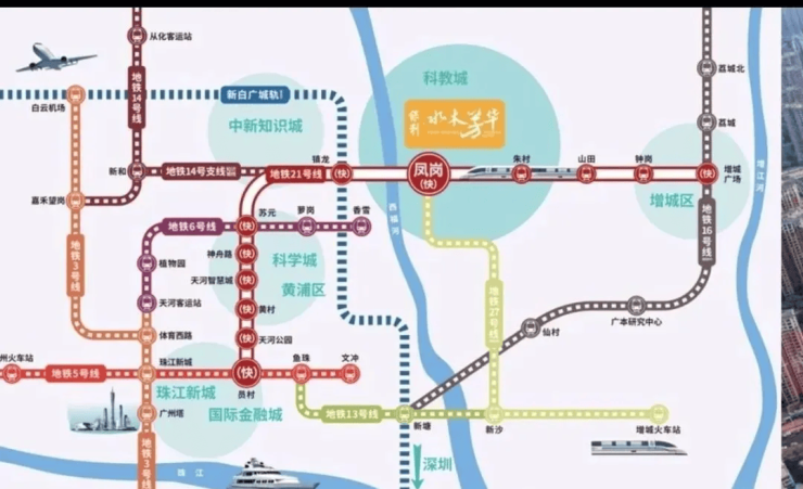 项目距离地铁21号线凤岗站仅800米,步行约10分钟即可抵达,属于真正的地铁盘。地铁21号线快线直达天河,其中坐快线2站可抵达科学城,4站直达智慧城,轻松衔接天河核心商圈及产业区,极大缩短了通勤时间,满足上班族“工作在天河,居住在增城”的需求。同时,从凤岗站乘坐地铁快线1站可到镇龙站,在此可接驳穗广深城际及新白广城际,实现北上直达白云机场,南下连通东莞、深圳,轻松便捷出行粤港澳大湾区核心城市。