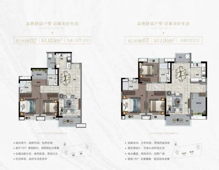 户型设计充分考虑家庭成长需求、通风采光及景观视野。小户型满足刚需和首置家庭,宽厅大阳台户型则适合改善型家庭及二胎家庭,兼具灵活性与舒适性。高拓展空间和景观优势,使每户都能享受高品质居住体验。