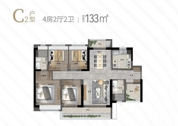 龙湖金地天峯当前主推6-8号楼,均为43层超高层住宅,采用3梯5户设计,兼顾效率与私密。户型方面,97㎡三房布局方正,功能齐全,适合年轻家庭或首次置业者;133-142㎡四房则空间阔绰,南北通透,满足二胎家庭或三代同堂的改善需求。所有户型均注重采光与通风,力求在有限面积内实现最大居住舒适度。