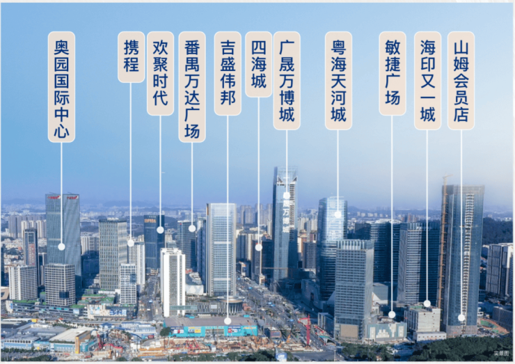 商业:3公里内汇聚万达广场、四海城、天河城、山姆会员店、永旺梦乐城、钻汇广场等9大购物中心,总面积超180万㎡(约为珠江新城商业3倍);