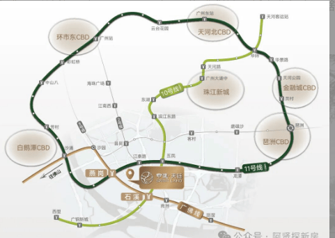 轨道交通是项目出行的核心优势之一,项目处于三地铁线环绕覆盖范围,轨道出行选择丰富,通勤灵活便捷。步行约750米可达广佛线石溪站,步行约900米抵达广佛线燕岗站,同时近距离覆盖地铁10号线、11号线两大城市通勤快线,三轨交汇的交通配置,大幅提升公共交通出行效率。搭乘地铁4站即可直达琶洲核心商务区,8站快速抵达珠江新城,9站覆盖天河核心商圈,轨道出行无缝换乘,无需拥堵自驾,轻松实现跨板块通勤,为无车家庭、日常通勤人群提供便捷出行保障。