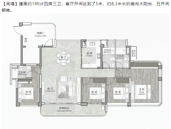 花都湖壹号摒弃市场常见的“偷面积”套路,以100%使用率+纯板楼结构,重新定义改善居住尺度。主力户型140㎡【阅境】四房三卫,客厅开间达5米,搭配约8.3米南向全景阳台,五开间朝南,采光通风堪称教科书级别;185㎡【揽境】五房四卫,则采用罕见的“豪华三套房”设计,主卧带独立衣帽间与卫浴,南北双景观阳台贯通,视野无遮挡。更令人惊叹的是400㎡顶层大平层,私享空中花园与270°环幕湖景,极致奢阔。所有户型均采用LDK一体化布局、全明格局、动静分区,细节处如玄关收纳、家政间预留、双卫干湿分离等,无不体现人性化考量。在“好房子”标准被反复强调的今天,花都湖壹号用产品力说话。