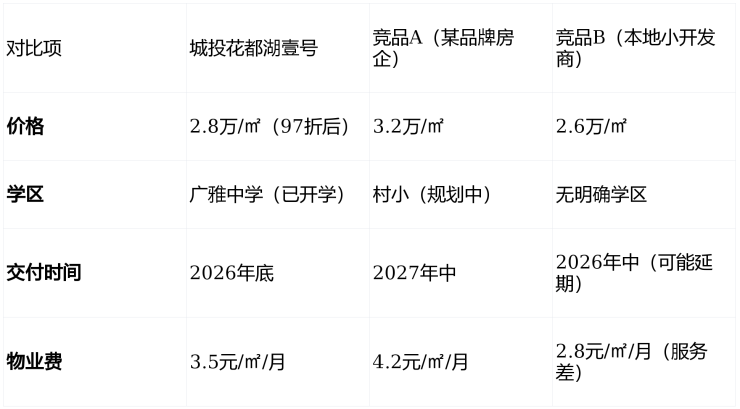 结论:城投花都湖壹号在价格、学区、交付保障上全面领先,是花都湖板块“质价比”最高的选择。