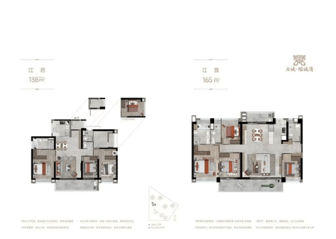 125㎡“2+2” 灵动户型为改善热门户型,得房率达 135%(实测),拓展后使用面积超 169㎡。户型采用 LDKB 全景大方厅设计,客餐厅与厨房、阳台连通形成约 45㎡开阔社交空间,6.8 米横厅搭配同宽观景阳台,南向无遮挡俯瞰花地河;灵动空间可改造为书房或儿童房,满足多人口家庭成长需求;主卧套间面积超 28㎡,配备独立衣帽间、双台盆卫浴,居住舒适度媲美更大面积户型。165㎡一线江景户型为终极改善选择,得房率达 138%(实测),7.5 米超大南向阳台直面花地河全景,四开间朝南设计,采光面达 16 米,主卧套间配备独立书房与环幕观景窗,全屋无浪费空间,是荔湾板块稀缺的 “江景大平层” 产品。