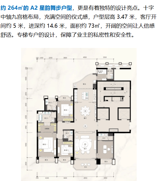 高品质建筑设计:南北通透的设计保证了良好的采光和通风,专梯专户的设计保障了私密性和安全性。