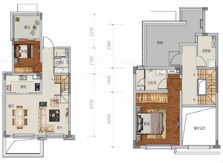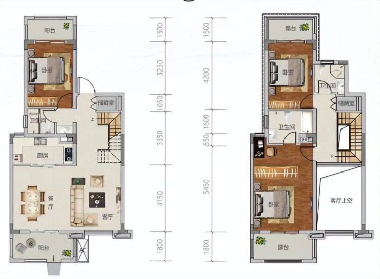 上叠户型139㎡:两房两厅一厨两卫三露台,顶层露台的设计增加了户外活动的空间,适合喜欢亲近自然的家庭。