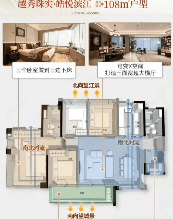 作为广州“新规”落地后的标杆之作,项目在户型设计上全面突破传统局限。首推建面约82-108㎡全南向三至四房,户户朝南,采光通风俱佳。其中: