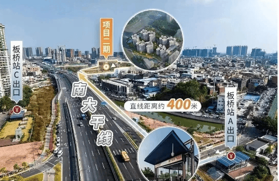 星河盛世锦城坐落于万博・余荫山房北侧・板桥地铁站附近,地处南大干线经济带上的番禺黄金财智走廊。三期组团虽离地铁 7 号线板桥站约 700 米,但出门即达南大干线,2 站可至万博核心区,5 站抵达琶洲。通过周边交通网络,能无缝连接广州南站、万博、琶洲、金融城及珠江新城等核心区域,通勤极为便利,对于在番禺、琶洲或珠江新城工作的人群来说,具有极大吸引力。