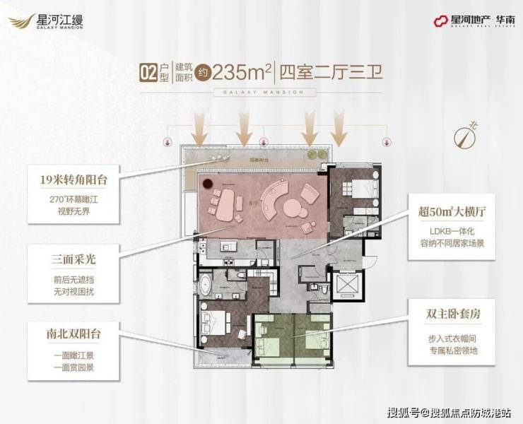 235平方米四房:专梯专户,距离江边仅90米左右,是项目主推户型,货量最少,只有30套。