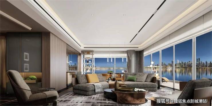 211平方米四房:南北都能望江,白天鹅楼栋映入眼帘,1-4层为业主会所,包含健身房、高尔夫球练习室、茶室、共享厨房等功能区。