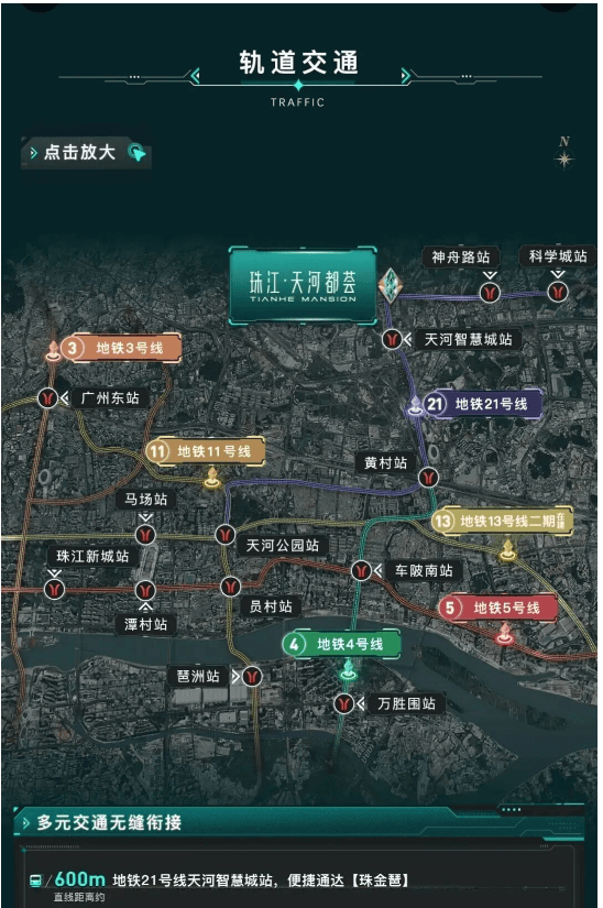珠江·天河都荟距离地铁21号线天河智慧城站仅约600米,步行时间大约8分钟,提供便捷的通勤条件。通过地铁网络,居民可以快速到达珠江新城等市中心区域。此外,周边还有多条公交线路,方便居民出行。