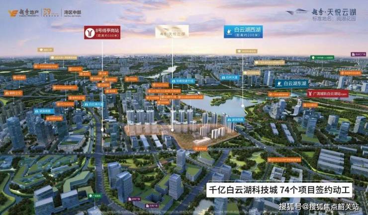 项目位于白云湖数字科技城启动区,该区域是广州“十四五”规划中“科技创新轴”的重要节点,已集聚中关村信息谷、北大科技园等超200家高新企业,未来将打造“数字中国”标杆实践区。同时,项目紧邻白云湖(广州中心城区最大人工湖),坐拥“一湖三涌六公园”生态资源,是主城区罕见的“产业+生态”双优板块。