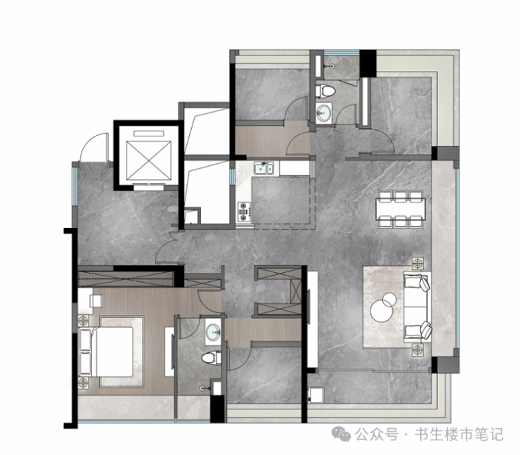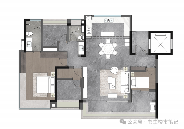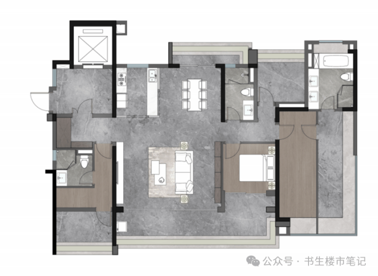 该户型采用港式豪宅设计手法,注重业主自我及家人居住舒适性,约125%超高使用率,媲美市面上180㎡户型空间,空间宽敞,配置高端,是改善家庭的顶级之选。