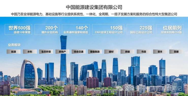 中国能源建设集团有限公司,是国务院国资委直接监管的特大型中央企业,连续10年荣登《财富》世界500强榜单,是全球能源电力、基础设施建设领域的领军企业,先后承建了三峡工程、南水北调、西气东输、三代核电等一系列关系国计民生的国家级重大工程,以国匠实力铸就了无数标杆工程,积淀了无可比拟的工程营造经验与品质管控能力。