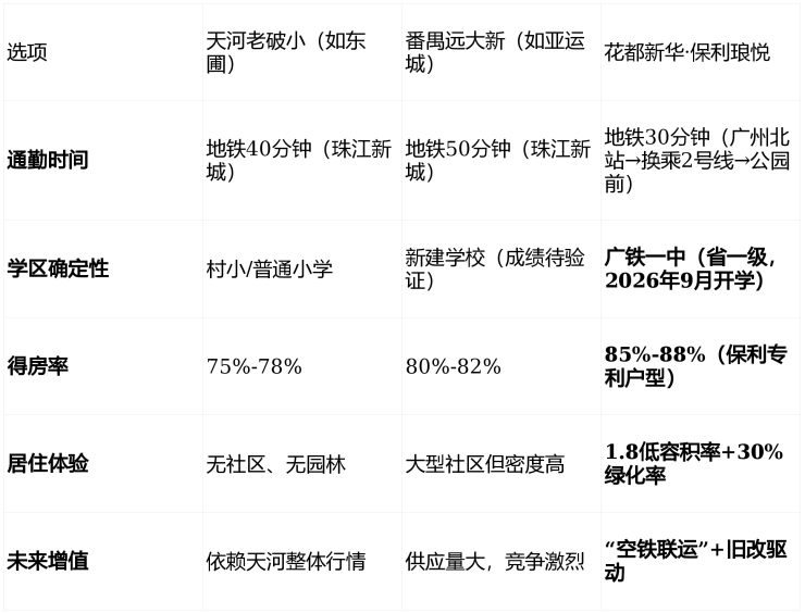 结论:若追求“确定性+品质”,花都新华·保利琅悦是“性价比之王”——同样的总价,在天河只能买75㎡老破小,在番禺住得远且学区不明,而这里能实现“学区+通勤+产品”三重保障。