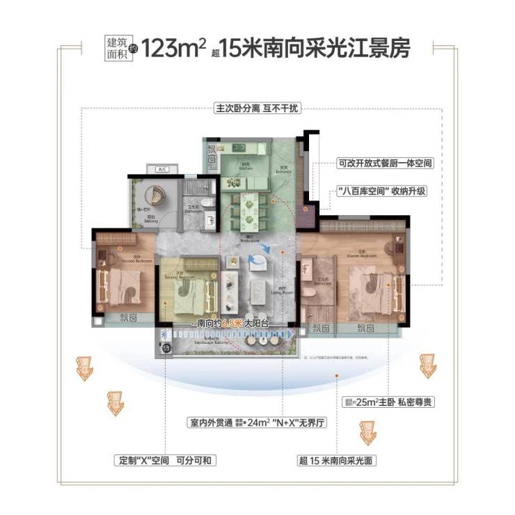 门窗:凤铝断桥铝 + 双层中空Low-E玻璃