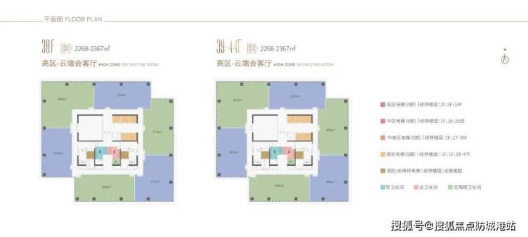 38-44F企业会客厅:面积338-479㎡,框架毛坯交付,可自由分割空间;