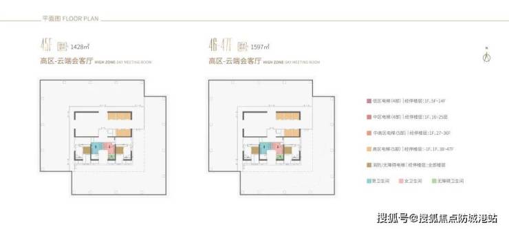 45-47F整层云端资产:面积1427-1596㎡,配备10米挑高双大堂、专属电梯及梁志天设计团队定制空中露台。