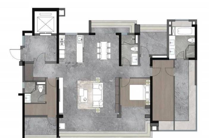 以建面约120㎡的四房户型为例,该户型四开间朝南,阳光可以充分洒进室内,让整个空间明亮通透。约6米宽景阳台,视野开阔,可欣赏到小区园林的美景,让您在家中就能享受大自然的宁静与美好。主卧采用套房设计,带有独立卫生间和衣帽间,保障了居住者的隐私和舒适度。