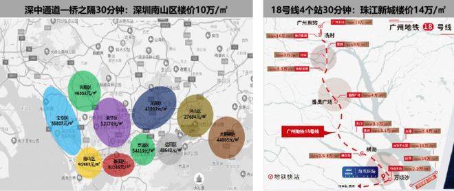 答:项目距离规划中的南沙枢纽(万顷沙站)综合交通枢纽约2公里。目前,广州地铁18号线已开通至万顷沙站,这是该线路的南端终点站。从万顷沙站乘坐18号线快线,无需换乘,仅需4站(约30分钟)即可直达珠江新城冼村站。18号线设计时速160公里,是目前广州乃至大湾区最快的轨道交通线路之一。因此,未来业主通过公交、骑行等短驳方式接驳至万顷沙站后,即可享受极其高效、舒适的地铁通勤,真正实现“南沙居住,天河工作”的半小时生活圈。