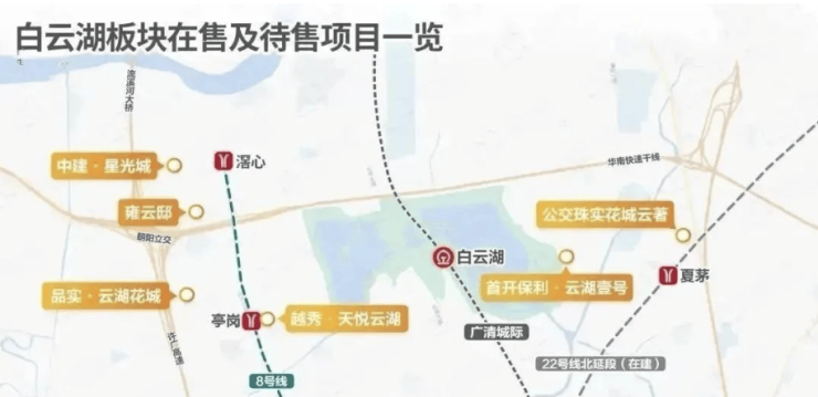 品实·云湖花城最显著的短期可量化优势之一就是与地铁 8 号线亭岗站的近距关系,步行约数分钟即可到站,是真正意义上的地铁上盖或近上盖产品。TOD(以轨道为核心的综合开发)能把通勤时间成本显著拉低,尤其在大城市中,时间就是生产力与生活品质。8号线在广州市内的换乘能力强,能快速接驳荔湾、越秀等传统成熟片区;同时板块外围的环线与多条高速路网又保证了自驾的便捷性。更重要的是,白云站和更大尺度的枢纽建设正在进行中,未来高铁、轻轨与多条地铁交汇,会把白云湖的节点价值进一步放大。对于有通勤需求的白领或希望减少孩子上学交通成本的家长,地铁近距离带来的日常便捷是硬核优势;对投资者而言,轨道旁物业的流动性与保值能力同样高于非轨道住宅。不过也需要提醒:轨道利好随着其他项目陆续兑现,区域供应也会逐渐释放,短期内要关注入市节奏与价格弹性。