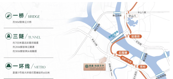 区位优势:地铁环线+主干道网,畅达珠江两岸