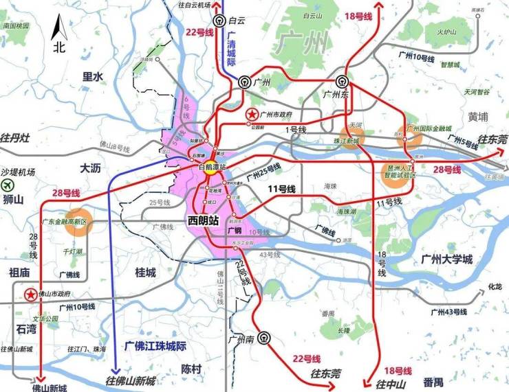 区域配套高端资源加速集聚,白鹅潭万象城(约19万平方米)预计2026年开业,聚龙湾珠江太古里首开区计划2025年底建成,形成重奢商业矩阵。大湾区艺术中心(“三馆合一”项目)已于2025年5月启用,成为省级文化地标。地铁11号线(广州首条大环线)、22号线(时速160公里)等15条轨道线路交织,白鹅潭大道串联三大功能区,强化集聚辐射能力。