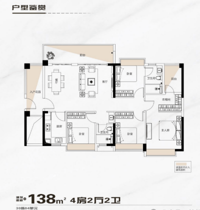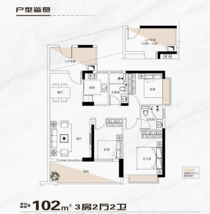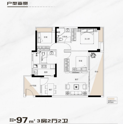 85-135㎡奢装洋房产品:高拓展面积户型,入户花园、阳台、飘窗等均有赠送空间。