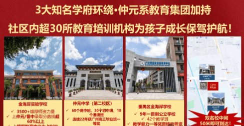 教育资源丰富:从幼儿园到中学,一站式教育资源齐全,家长接送方便,孩子上学安全。