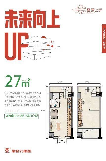 项目在售面积涵盖 A 户型 32㎡、B 户型 32㎡、C 户型 38㎡以及 D 户型 27㎡(复式),主推 27 - 38㎡面积段。平层 3 米的层高,空间开阔不压抑;复式 4.7 米的挑高,可打造出灵动的双层空间,实现动静分区,满足个性化的生活场景。复式小墅赠送花园,为生活增添自然情趣;平层带阳台公寓,让阳光与清风轻松入室。