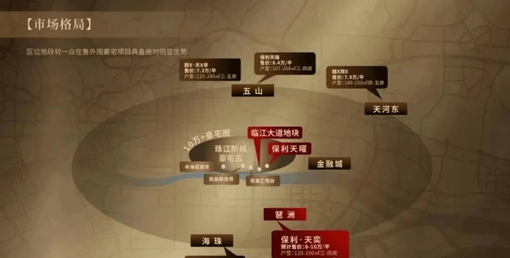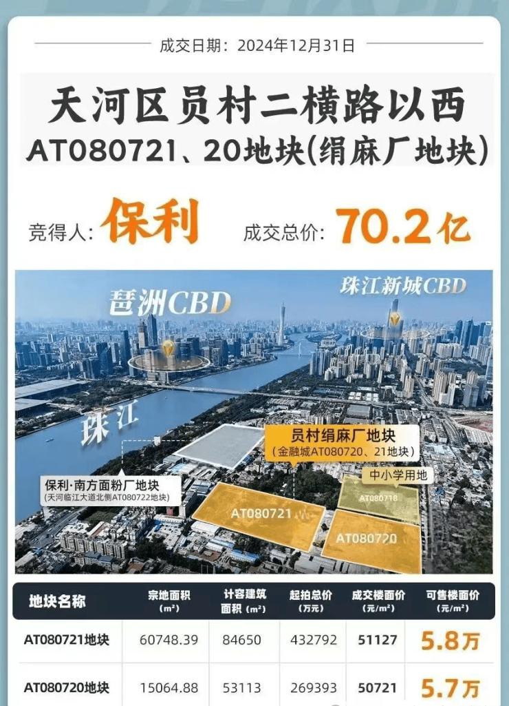 回溯土地的历史,更能读懂保利天曜的价值厚重。这块员村绢麻厂地块,早已不是第一次头顶“地王”光环——早在2008年1月,恒大就曾以41亿天价竞得该地块,成为当年的天河地王,后因退地导致地块雪藏15年。直到2024年12月31日,保利以70亿巨资拿下这块双地块,折合成交楼面价5.1万/㎡,让这颗“沉睡的明珠”终于重见天日。值得一提的是,2024年保利在广州的土储布局堪称“大手笔”——100+亿拿下南方面粉厂、近60亿拿下琶洲三兄弟,再加上绢麻厂地块及其他地块,全年投了近300亿,这般雄厚的实力与坚定的布局,不仅彰显了保利对广州市场的信心,更预示着其将以“造城之力”推动区域发展。