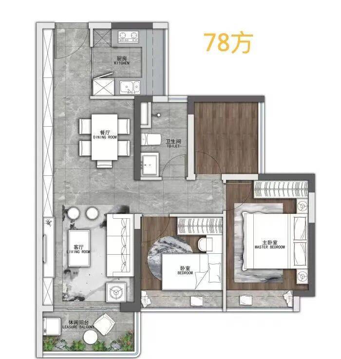 89㎡的三房,横厅设计,相比于78㎡的,主卧做了套房设计。且主卧与次卧的飘窗都很大,采光够好,住起来舒适度也会更高。