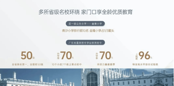 金隆小学作为南沙老牌名校,拥有36个教学班,可容纳1620名学生,以扎实的教学质量和丰富的素质教育闻名;华南师范大学附属中学(南沙校区)强势入驻,规划初中与高中各36个班,总招生规模达3600人,依托华师大百年教育底蕴,打造湾区基础教育高地;此外,省一级重点学校——南沙第一中学亦近在咫尺,其高中部52个班、初中部42个班,合计在校生超4600人,历年高考与中考成绩领跑全区。