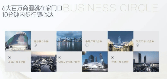 项目地处南沙行政、商业、文化与居住四大中心交汇之地,真正实现“出则繁华,入则宁静”的理想生活状态。步行范围内,万达广场、COCO Park、南沙城、今洲新天地、中环广场、华汇广场等六大高端商业体环伺四周,从国际品牌旗舰店到精致生活超市,从米其林风味餐厅到潮流咖啡馆,一站式满足全龄段、全时段的消费需求。无论是周末家庭聚会、朋友小聚,还是日常采买与休闲娱乐,皆触手可及。