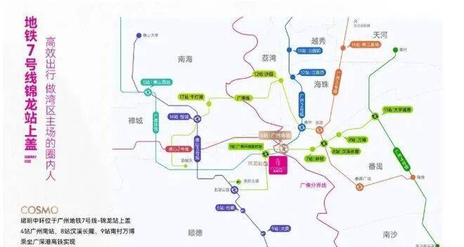 珺玥中环拥有得天独厚的交通条件。紧邻广州地铁7号线锦龙站,下楼即达,四站即可到达广州南站枢纽,并且能够畅享佛山地铁2号线的便捷。此外,紧邻广佛环线陈村站,一站直达广州南站,三站到广州大学城,四站可达琶洲商务区。“三纵三横”的立体路网,如东新高速、广珠西线等,快速连接周边区域,15分钟通过海华大桥直达广州南站,轻松实现湾区各城市的无缝对接。