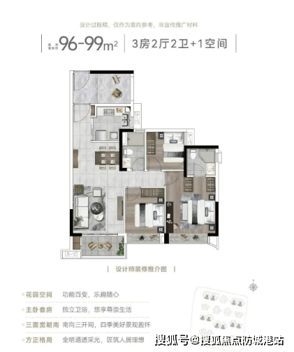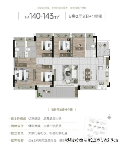 城投天河壹品主推建面约96-143㎡的3+1至5+1房户型,满足不同家庭结构需求。户型设计南北通透,多一空间理念,让每一寸空间都物尽其用。以建面约126㎡双主套大四房为例,超阔横厅设计,南北通透,清风徐来,园林景观与马鞍山风光尽收眼底。双主套设计,既彰显主人私享居住风范,又满足家庭生活便利,合而不扰,温馨升级。