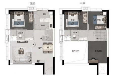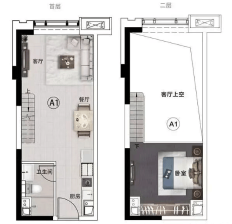 百变LOFT|49.72㎡ 一房两厅一卫:双层设计增加了空间利用率,提供更加灵活的生活方式。