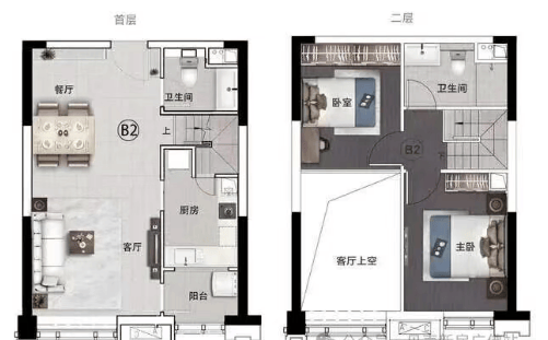 百变LOFT|66.99㎡ 两房两厅两卫:宽敞明亮的两居室,配备独立卫生间,适合家庭居住。