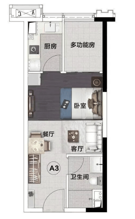 轻奢平层公寓 | 46.22㎡ 两房两厅一卫:紧凑而功能齐全的设计,充分利用每一寸空间,营造出温馨舒适的居住环境。