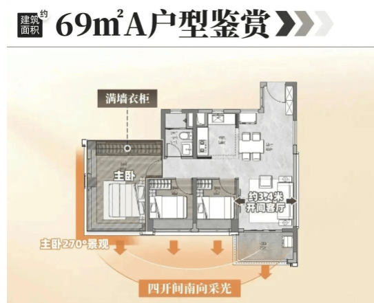 项目主推 69-113㎡三至四房,新规使用率超 100%,户型设计贴合刚需改善需求。69㎡三房为清盘爆款,南北对流设计,双面江景视野,客厅开间 3.15 米,打通卧室与餐厅可形成 20㎡大方厅,主卧约 17㎡带 L 型飘窗(眺望白鹅潭景观),是广州西部总价最低的江景三房;85㎡三房为舒适款,四开间朝南(约 12 米采光面),独立入户玄关 + 动静分区,主卧 23㎡带 270° 飘窗,所有卧室朝南,兼顾功能性与舒适度;113㎡四房为改善款,四开间朝南 + 南北对流,南向超大阳台,LDKB 一体化设计,主卧近 30㎡带衣帽间,尺度堪比上一代 130㎡产品,是西部最小的江景四房,适配多代同堂家庭。